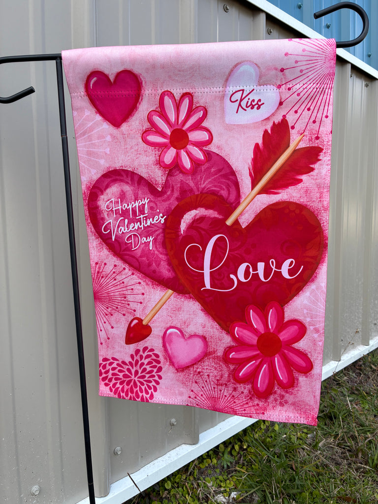 Celebrate love and friendship with this charming Happy Valentine’s Day garden flag. Featuring a flurry of vibrant hearts, this 12” x 18” double-sided flag adds a sweet and festive touch to your garden, porch, or walkway. Perfect for spreading Valentine’s Day cheer, it’s an easy way to welcome guests and show your love for the season. ❤️💌