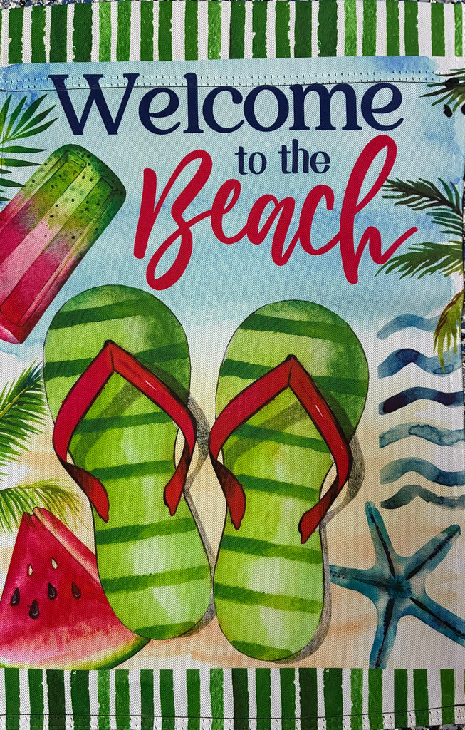 Welcome To The Beach Flip Flop Watermelon Garden Flag